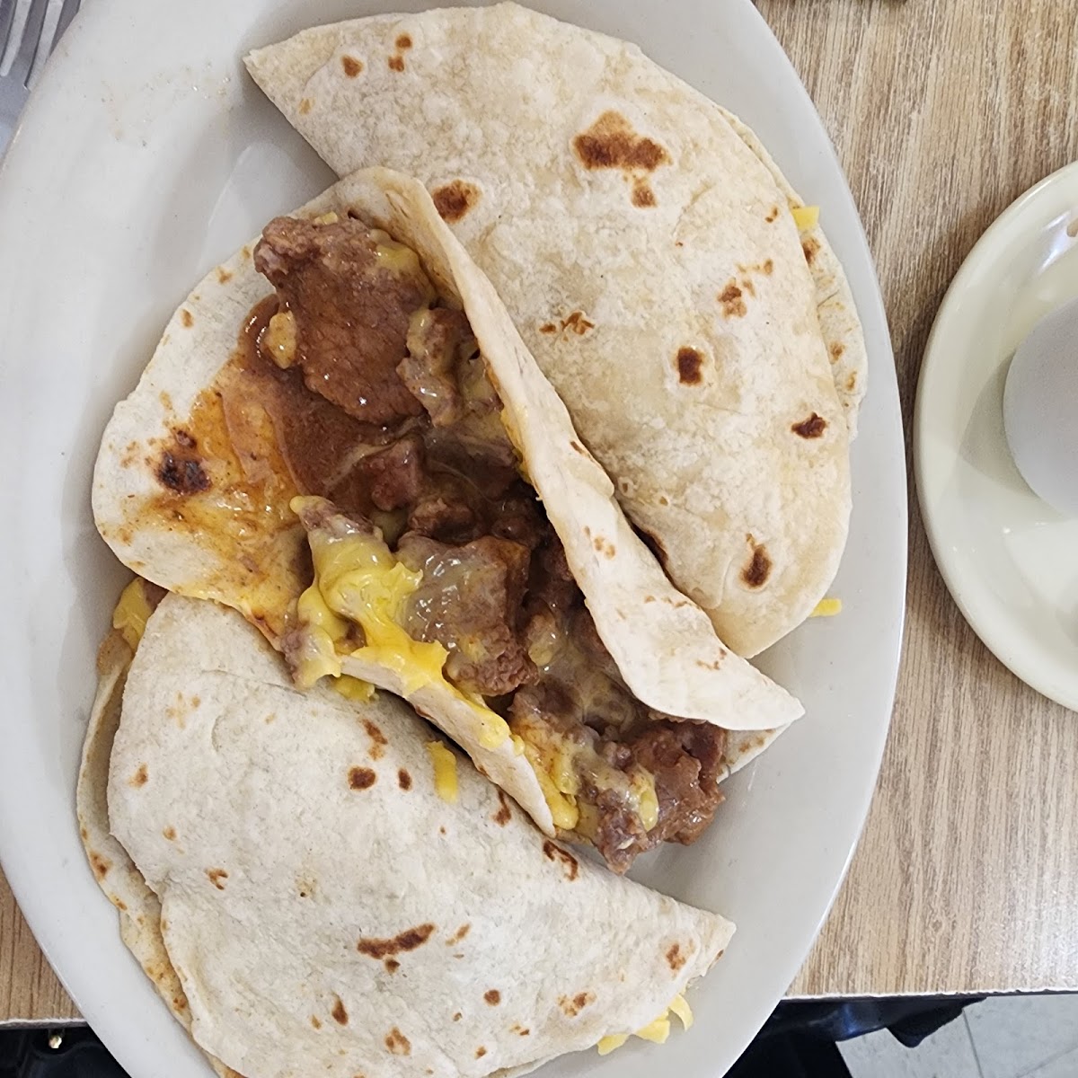 The menu centers around classic Mexican and Tex-Mex dishes. Breakfast tacos—featuring fillings like crispy bacon and egg or chorizo con huevos—are a popular grab-and-go option that locals appreciate for a quick yet filling start to the day. For heartier plates, the carne guisada offerings draw particular praise, whether in tacos with cheese or as a savory plate paired with sides. Puffy tacos, enchiladas, and various fajita plates add to the well-rounded Latin American selection, appealing to those craving authentic, satisfying flavors that lean more toward home-style than restaurant polish.