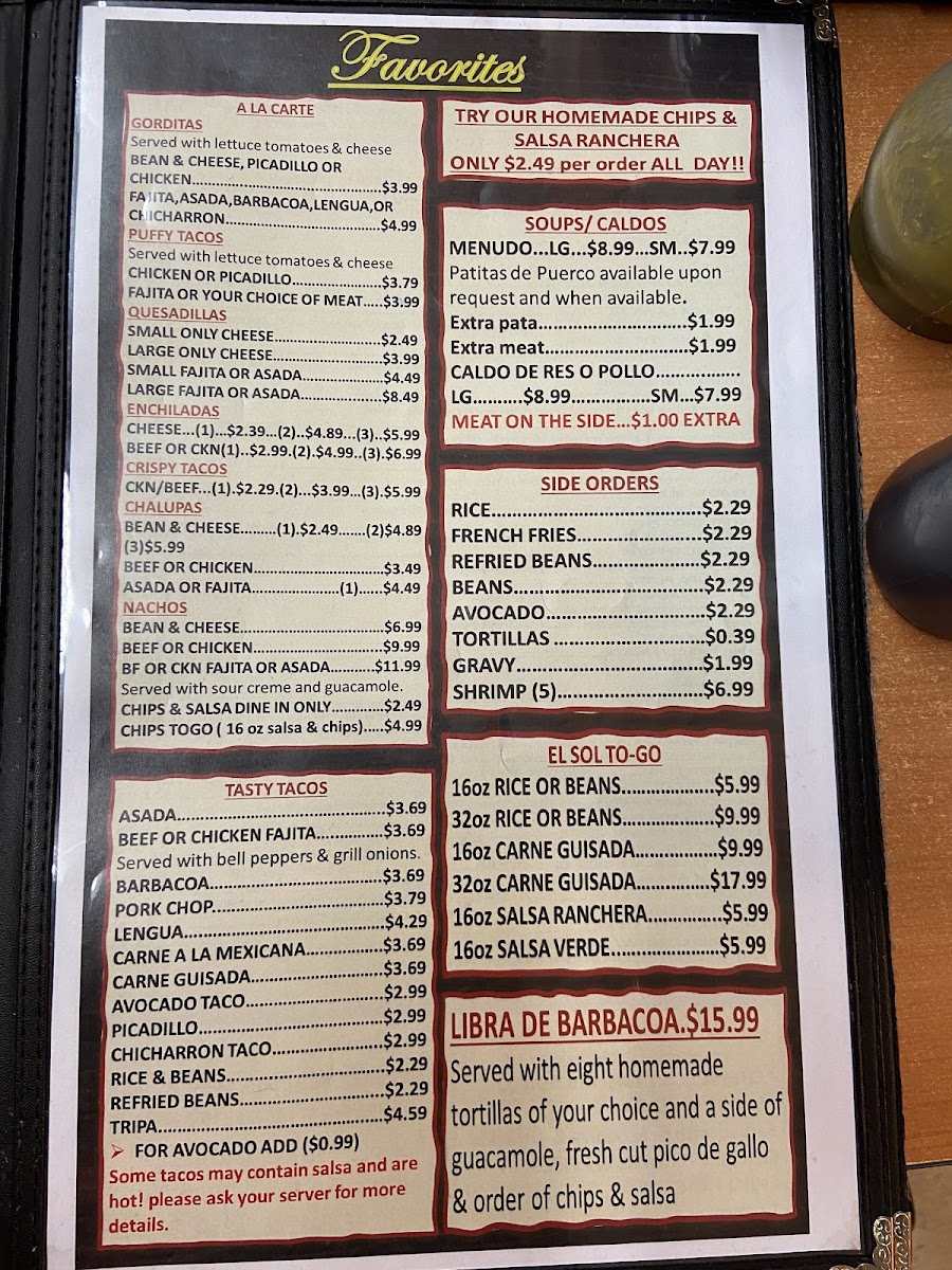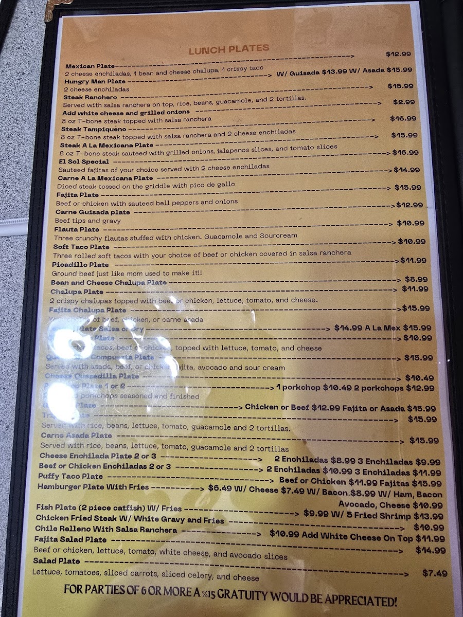 El Sol Mexican Restaurant Menu